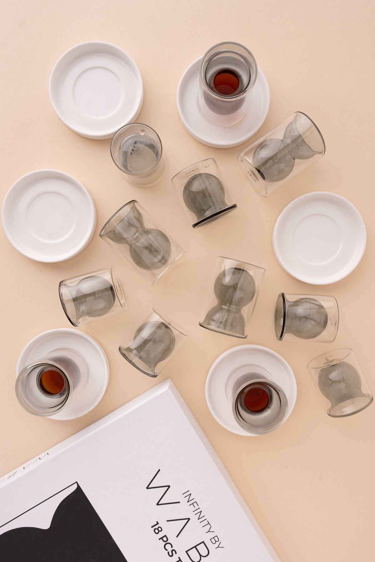 طقم دبل وول استكانات شاي وفناجين قهوة عربية مكون من 18 قطعة