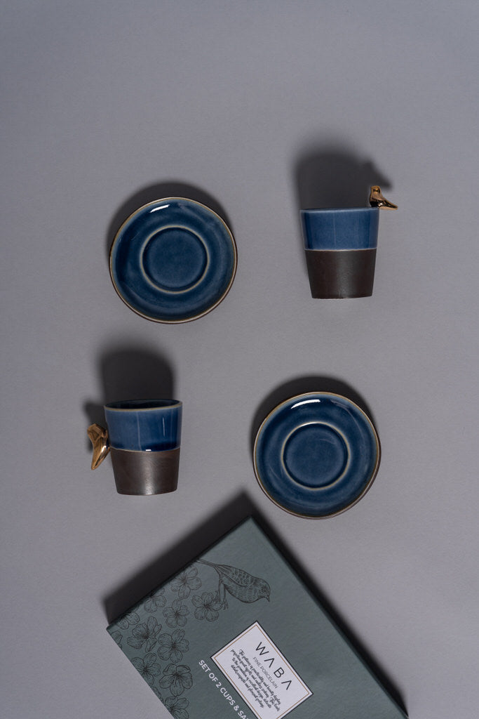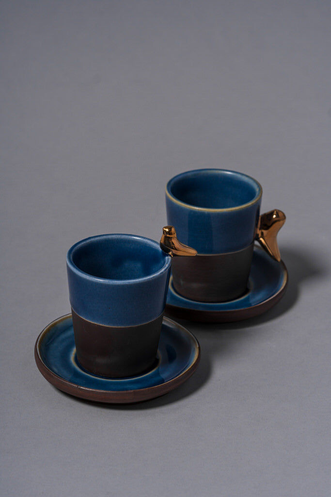 طقم قهوة من ٢ فنجان و ٢ قواعد للفناجين