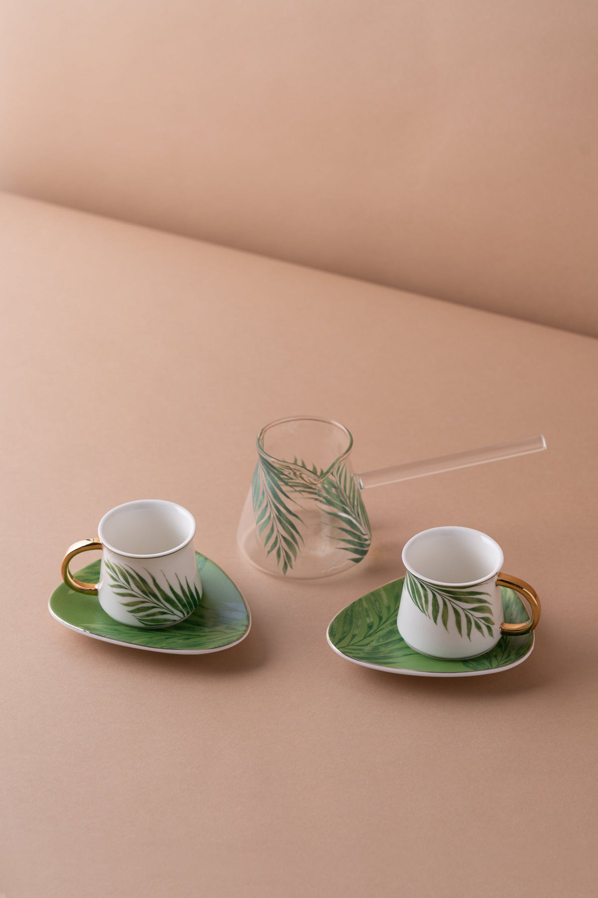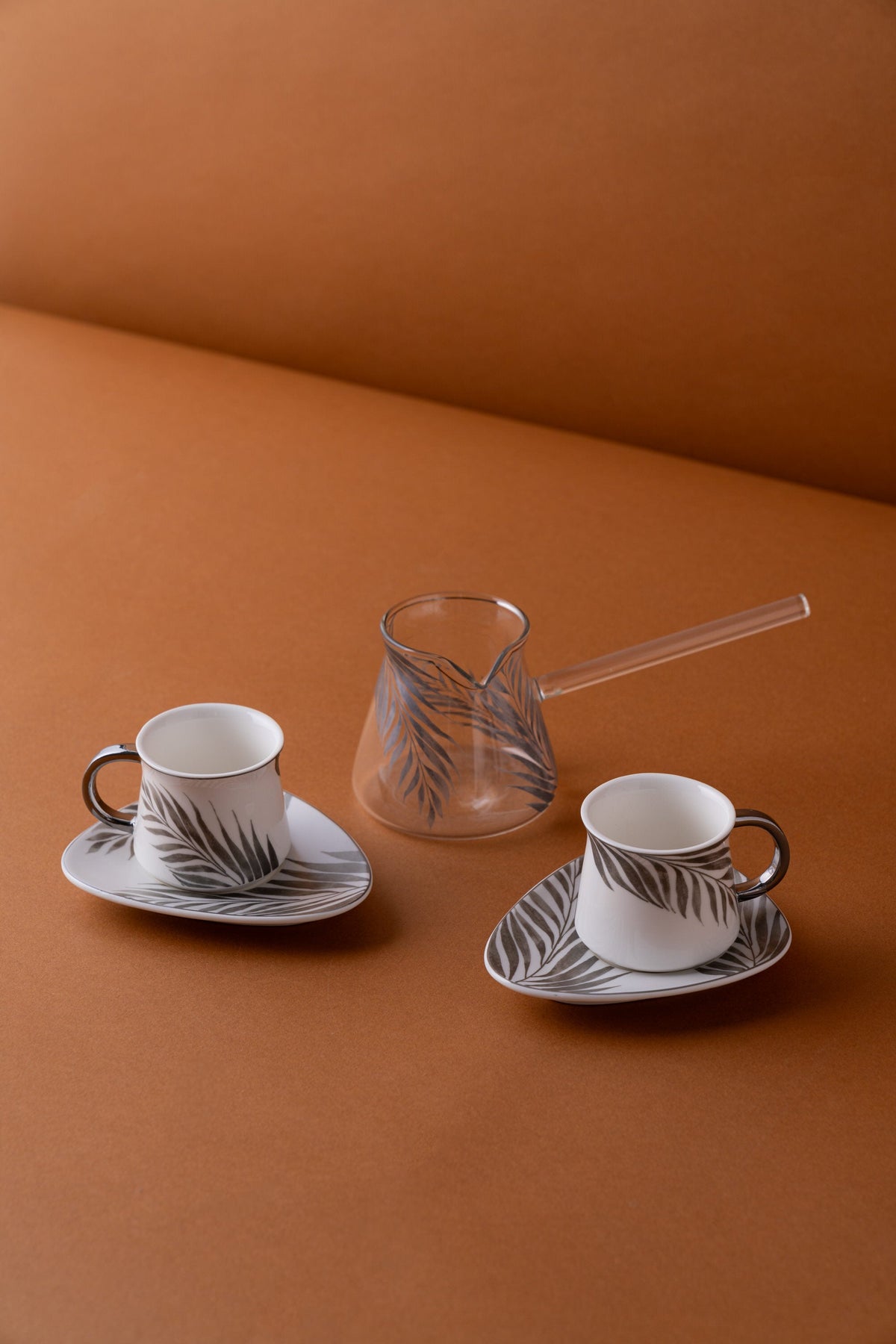 طقم فناجين قهوة مكون من 2 فنجان و 2 صحون للفناجين و ركوة