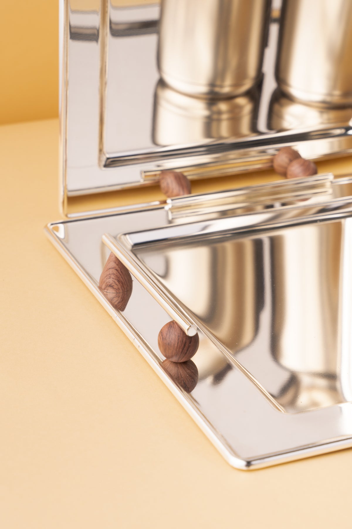 طقم صواني مستطيلة 2 قطعة TP3 - فضي / مسكه خشبي