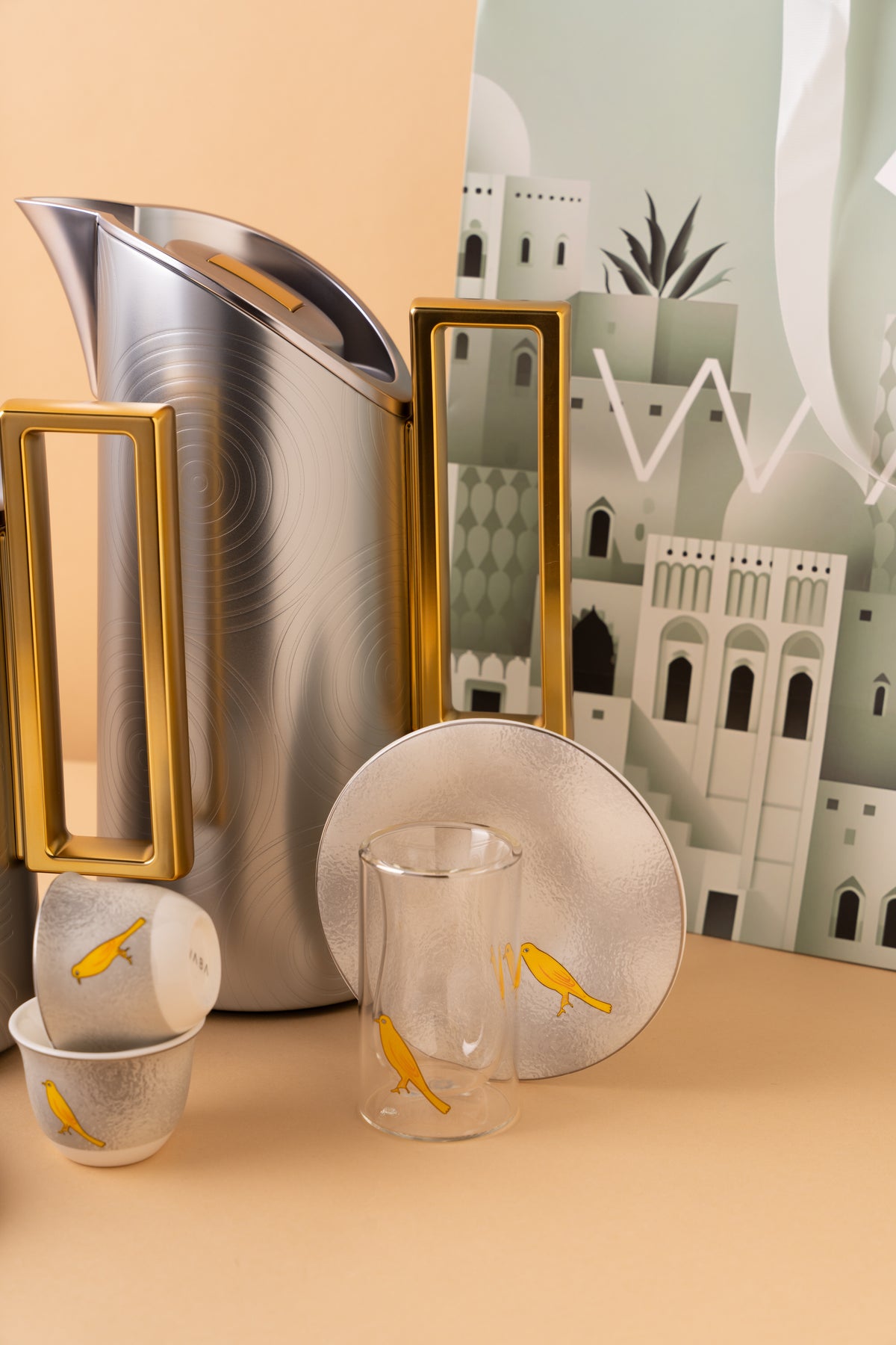 طقم استكانات شاي دبل وول وفناجين قهوة عربية مكون من 18 قطعة