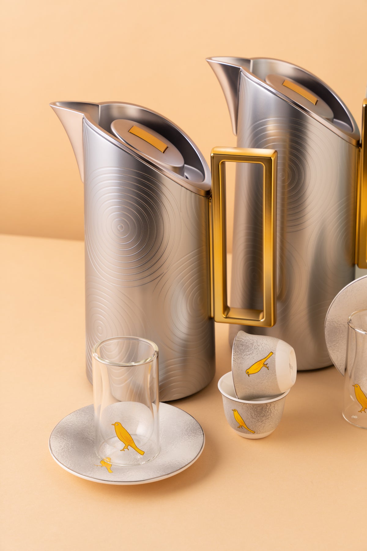 طقم مطارات العز 2 قطعة 1 / 0.7 لتر - فضّي مطفي / مسكه ذهبي