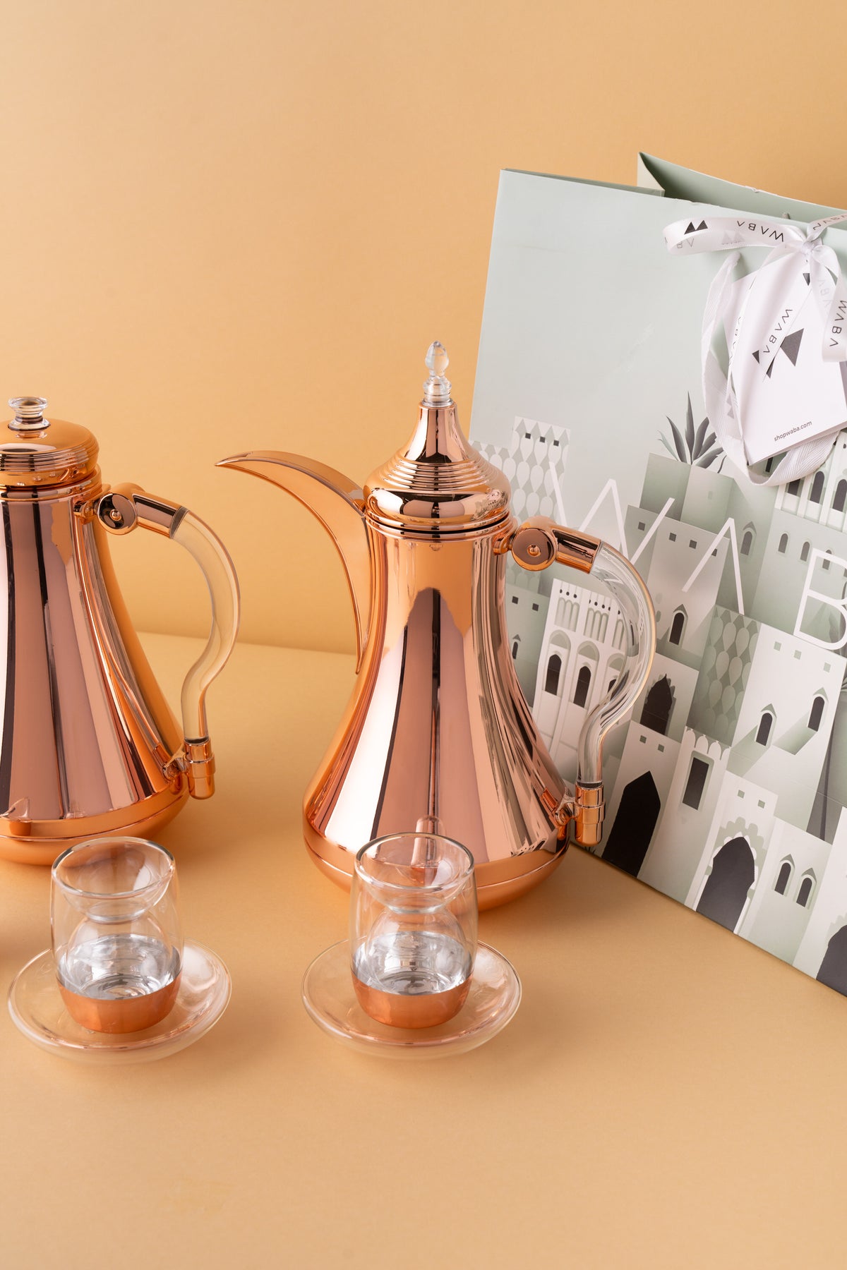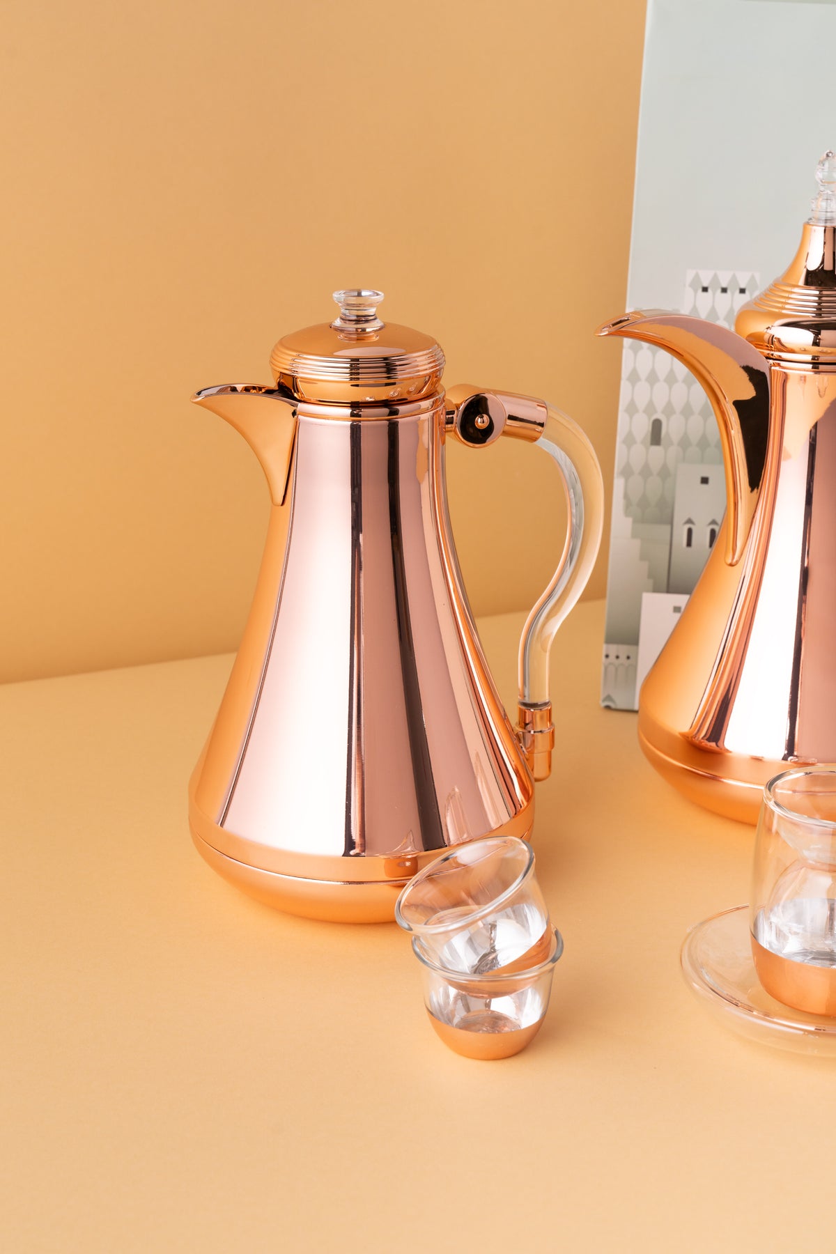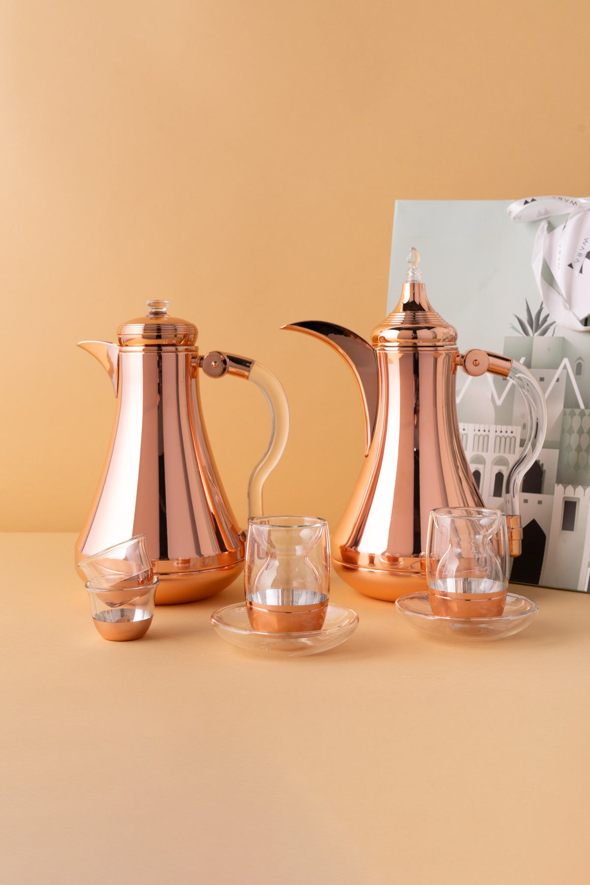 طقم شاي وقهوة دبل وول 18 قطعة HL1 - نحاسى لامع