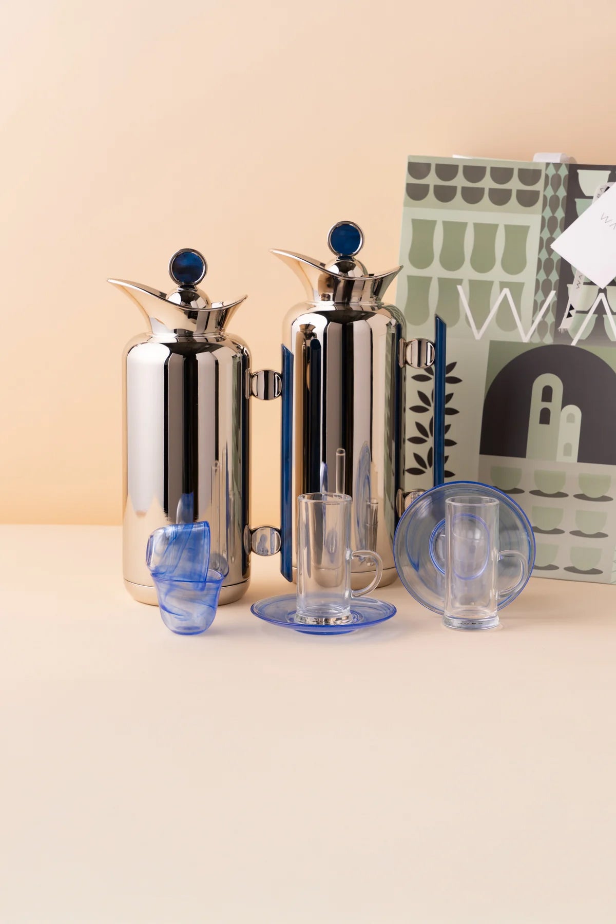 طقم مطارات ارام 2 قطعة 1 لتر / 0.7 لتر - فضي لامع /مسكه ازرق رخامي