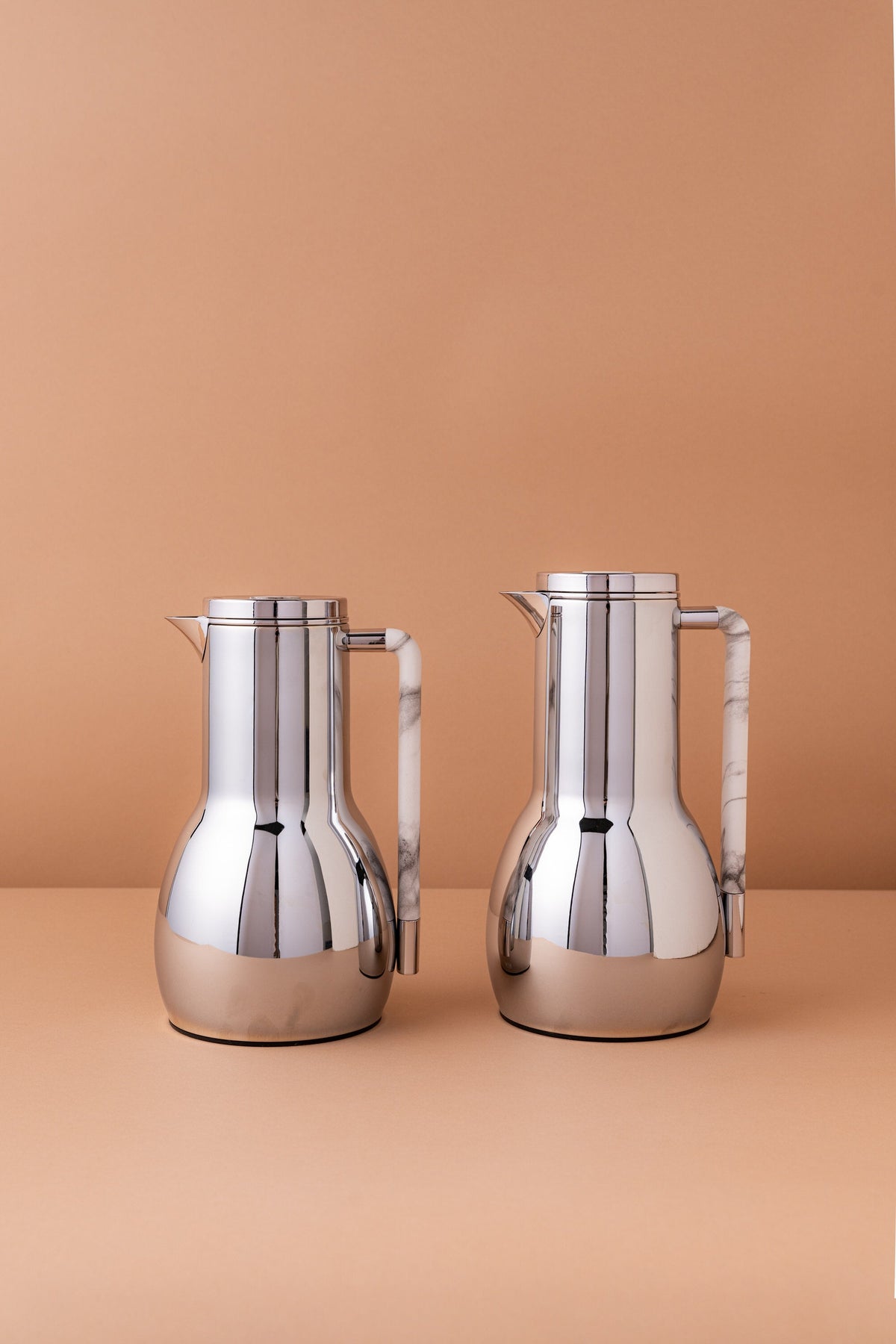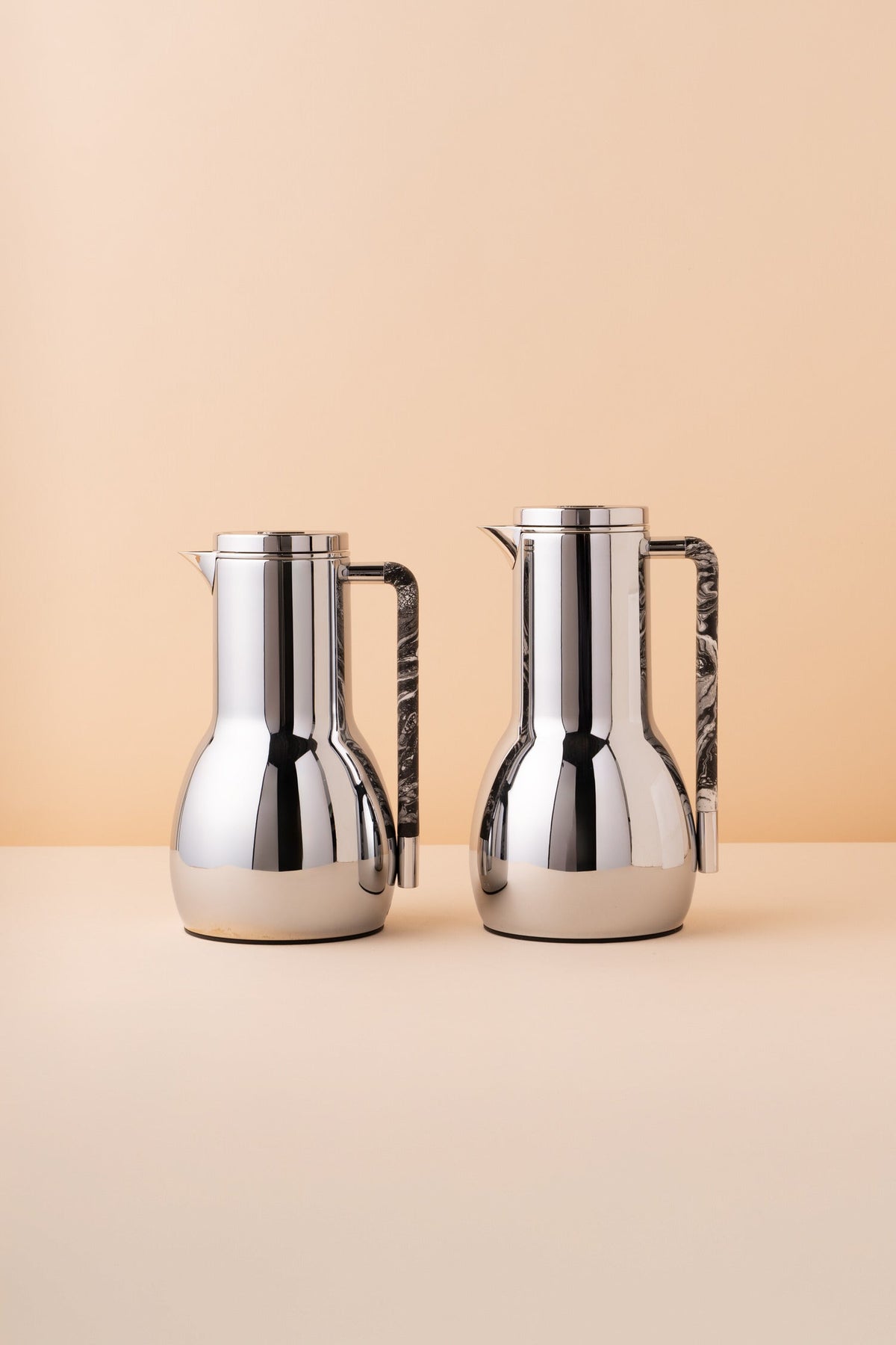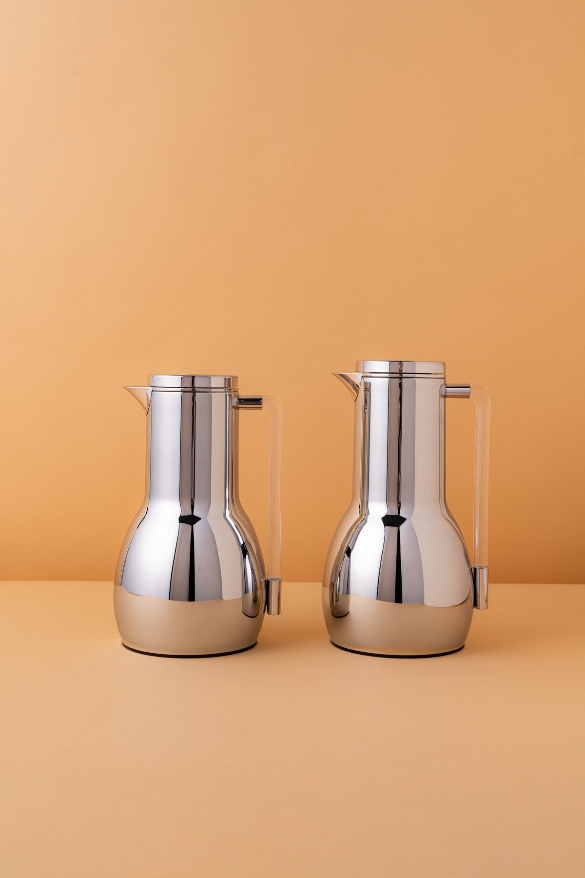 High Quality FlasksSet of 2 FlaskCapacity: 1L / 0.7LPress LidKeeps the heat for 8 hoursThe body is Steel and glass inner inside.