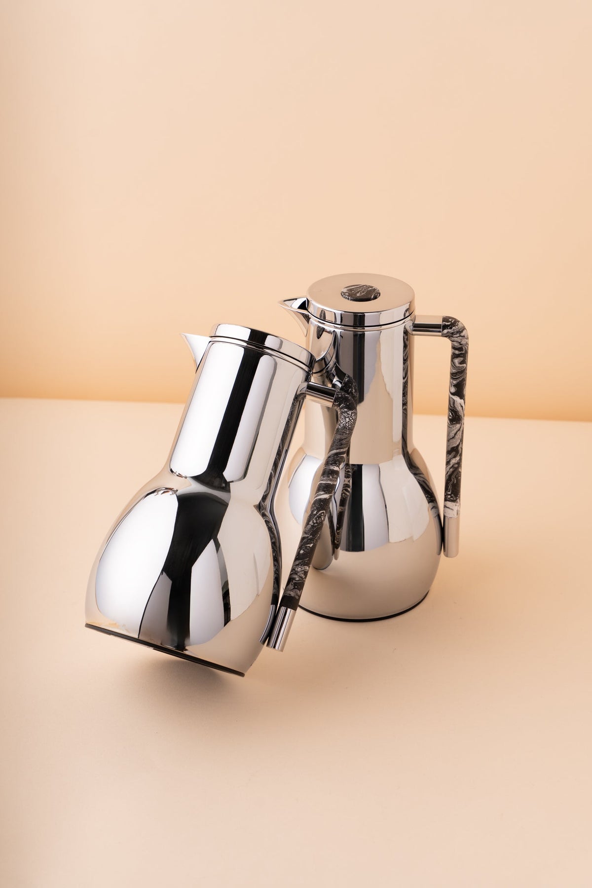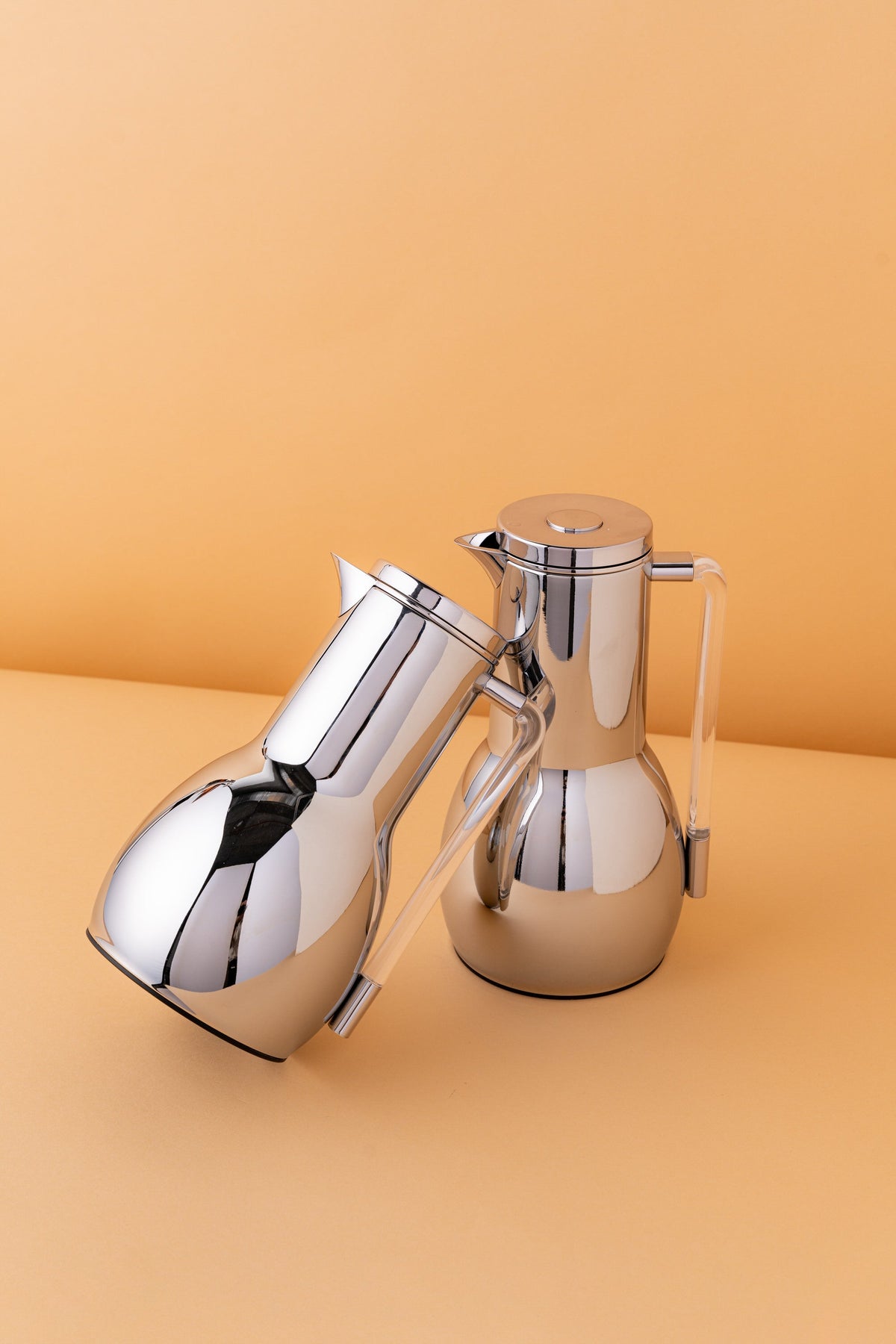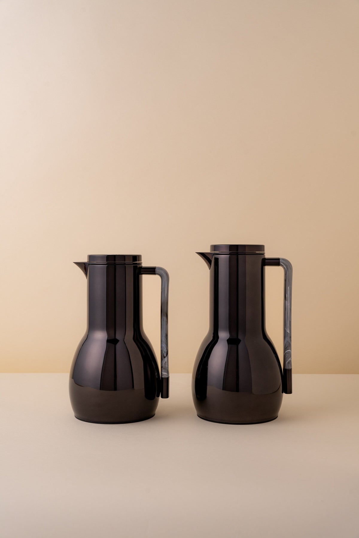 High Quality FlasksSet of 2 FlaskCapacity: 1L / 0.7LPress LidKeeps the heat for 8 hoursThe body is Steel and glass inner inside.