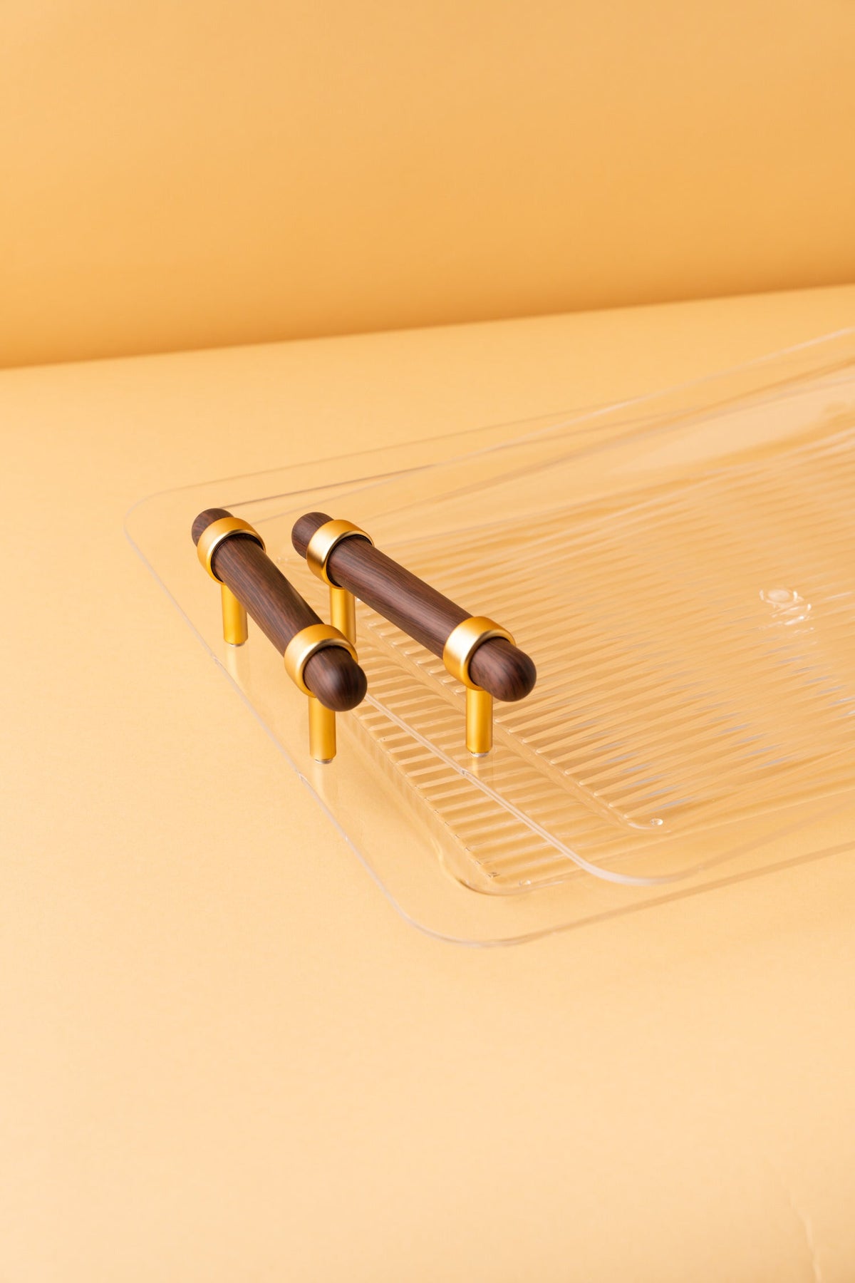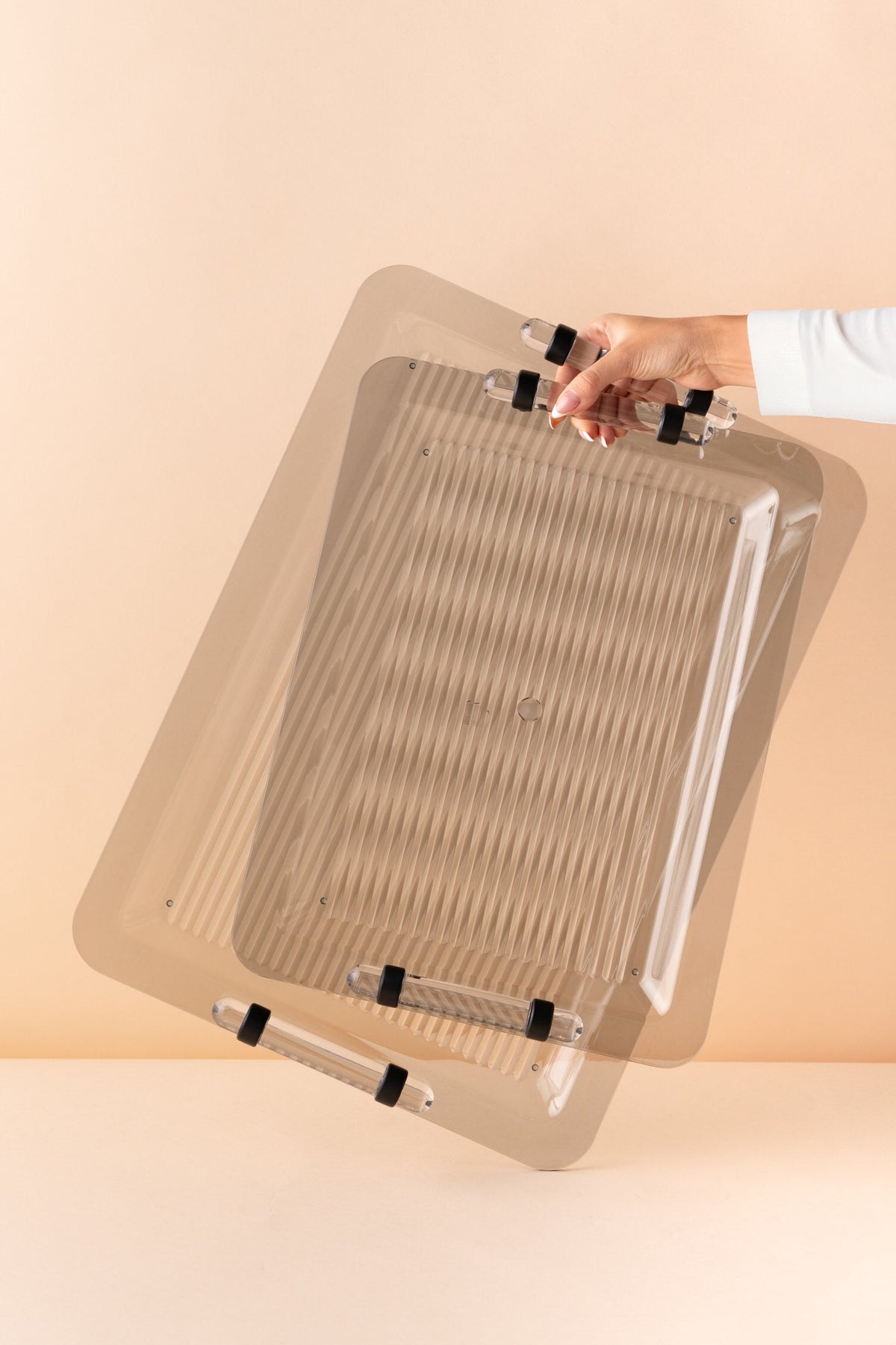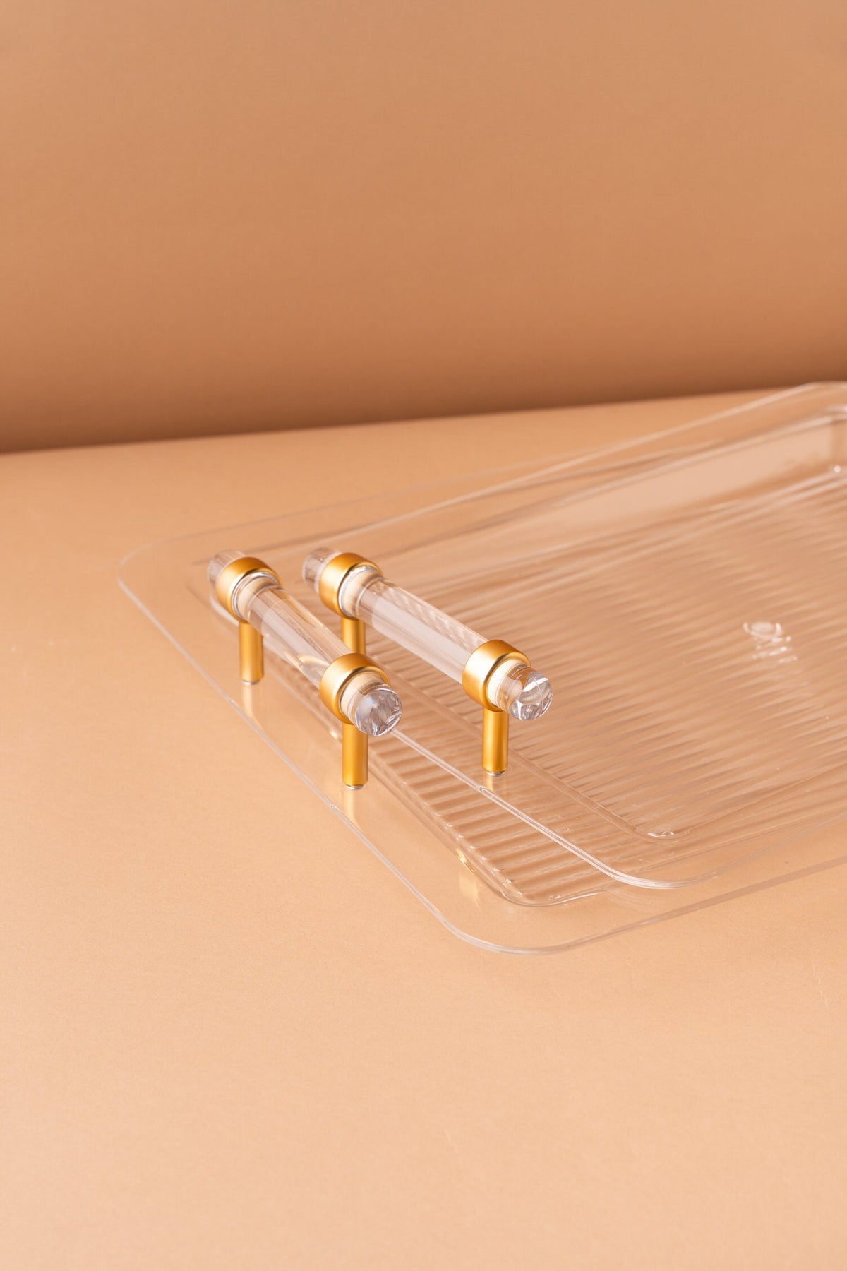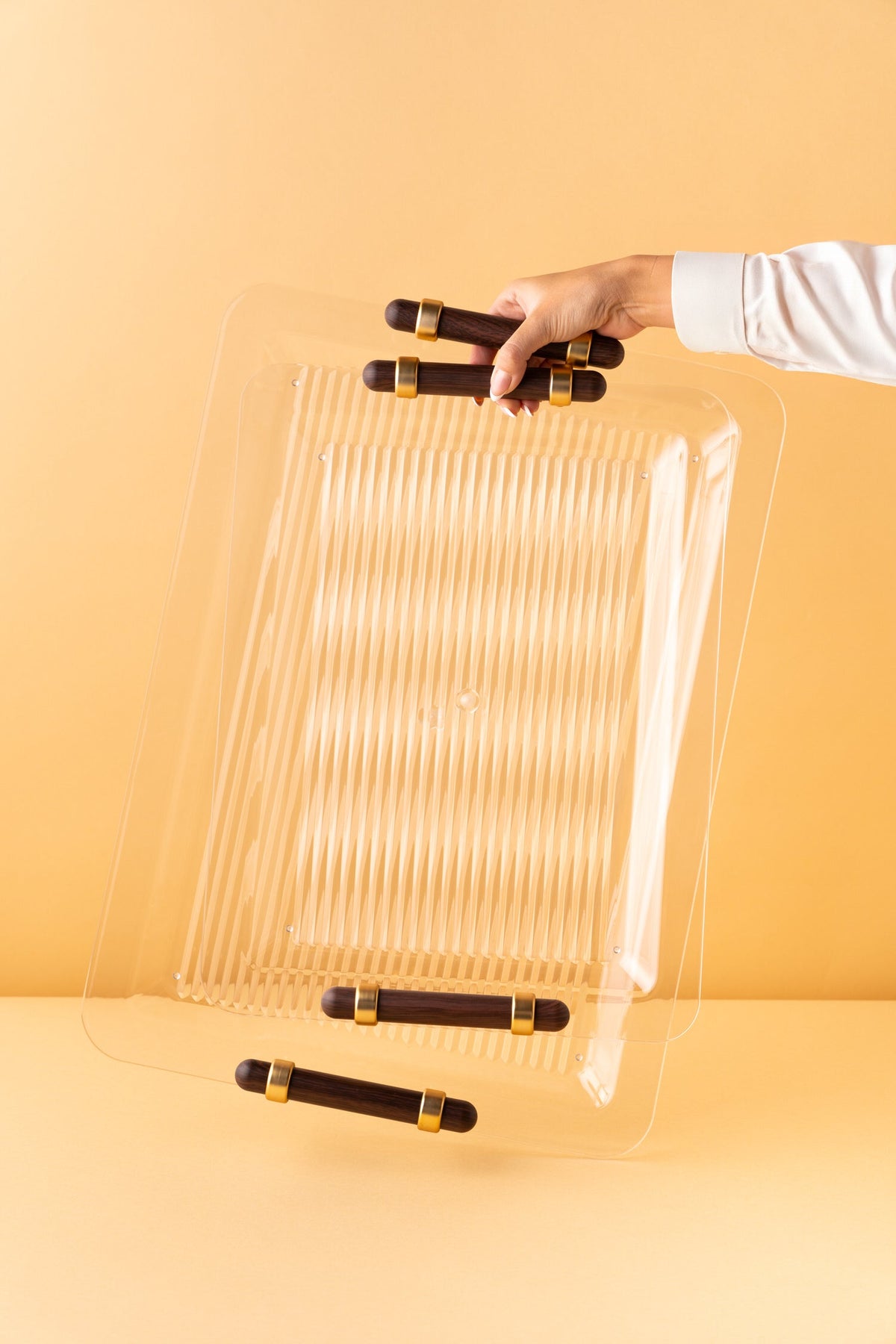 Rectangular acrylic serving tray set consists of 2 pieces.